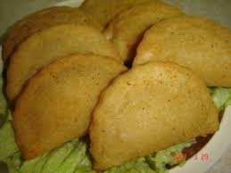 Depois é só esticar a massa colocar um pouco de recheio, dobrar a massa e cortar, se não tiverem cortador pode ser com um copo. Passa-se por ovo batido e de seguida por pão ralado.